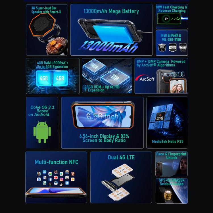 21. Protection: IP68/IP69K / MIL-STD-810H Waterproof Dustproof Shockproof