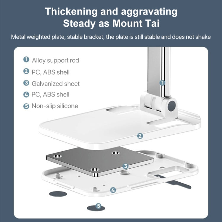 1. With double shaft design, the angle can be adjusted at any time 2. Support height 12-15.5cm lift 3. Metal weighted plate, stable and not shaking 4. Reserved charging port, you can plug in the charging cable 5. The depth of the groove just fits the frame of the mobile phone and does not block the subtitles 6. Folding design, easy to carry 7. Four corners of non-slip silicone, safe operation without slipping 8. Material: ABS+aluminum alloy+silicone